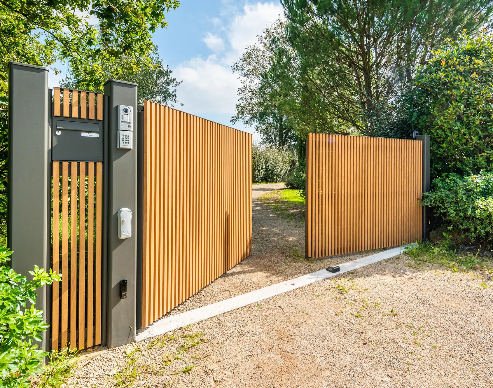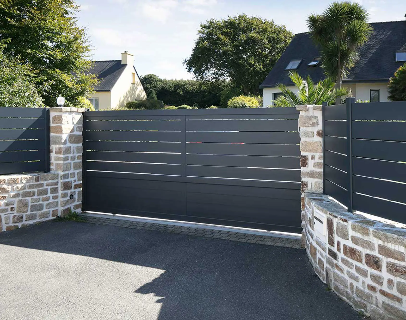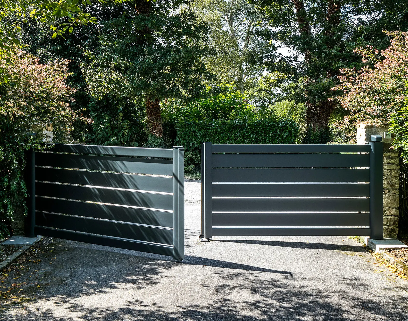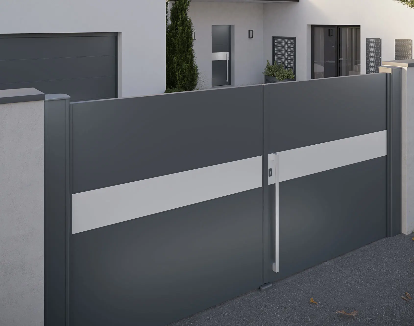 Les portails battants en aluminium sont une option classique et élégante pour sécuriser votre entrée. Ils sont disponibles en plusieurs configurations et peuvent être automatisés pour un confort d’utilisation optimal. Nos portails 2 vantaux sont robustes et conçus pour résister à un usage intensif tout en offrant un accès facile et sûr à votre propriété.