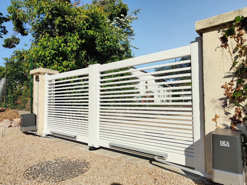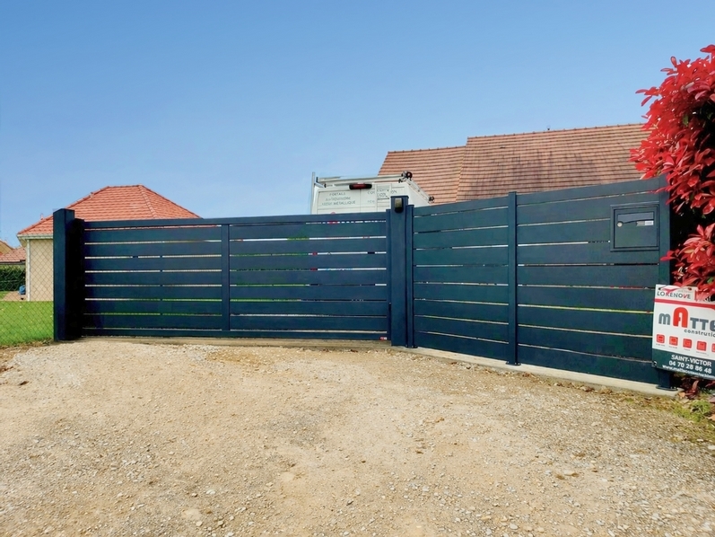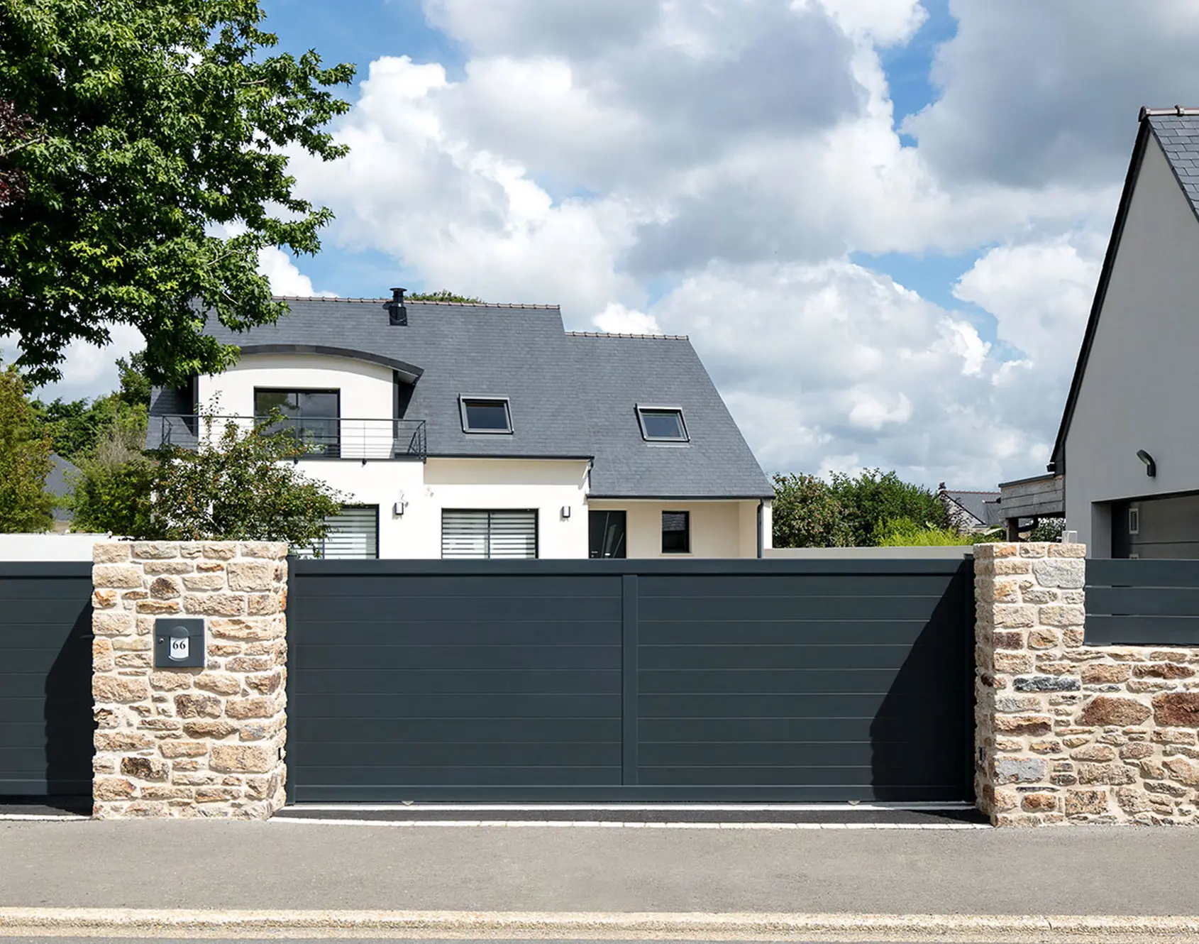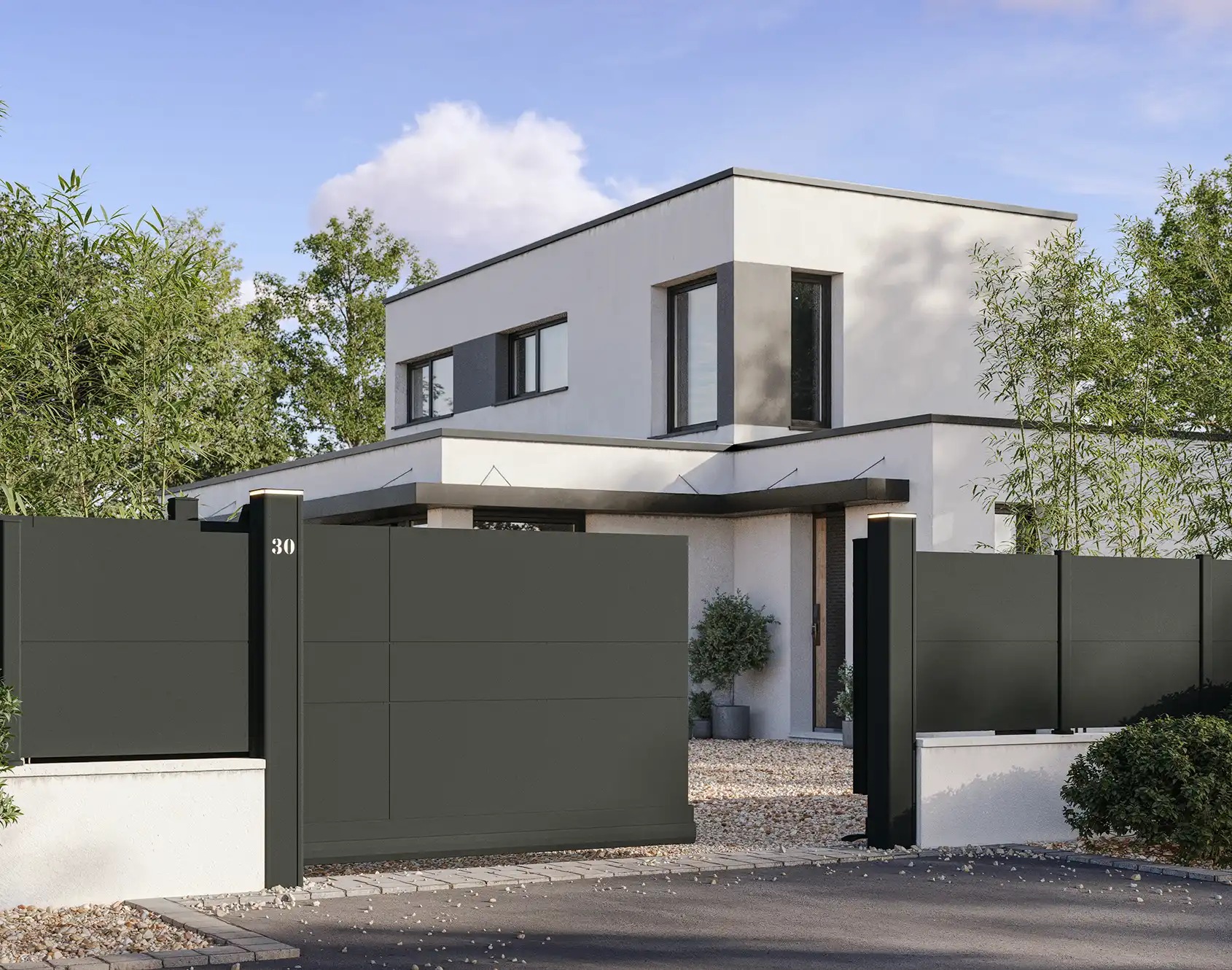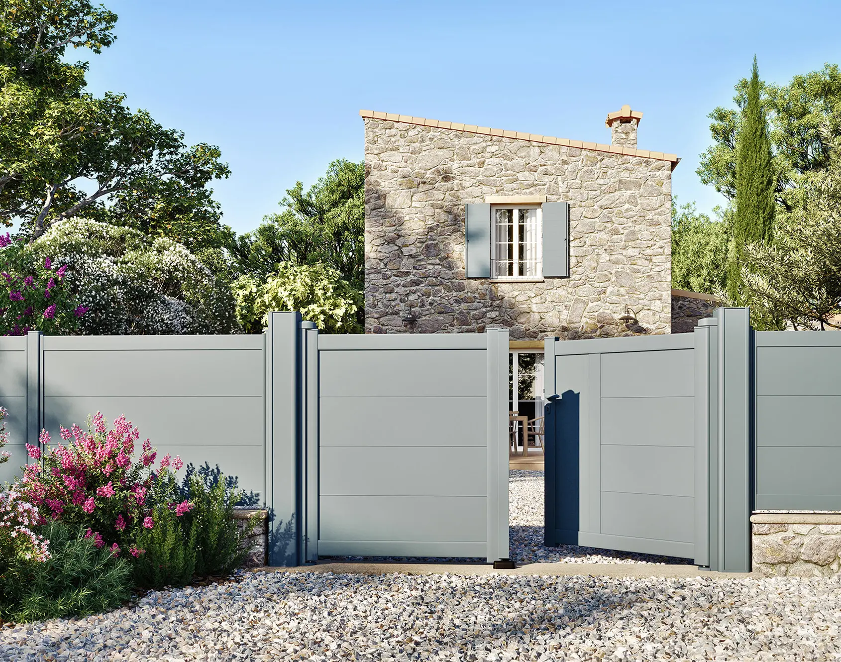 Pour la teinte, si vous ne trouvez pas votre bonheur parmi les 25 coloris standard, nous vous proposons plus de 300 nuances en options. Pour clore et sécuriser votre propriété, nous pouvons bien sûr vous fournir la clôture alu qui s’harmonise avec votre portail.